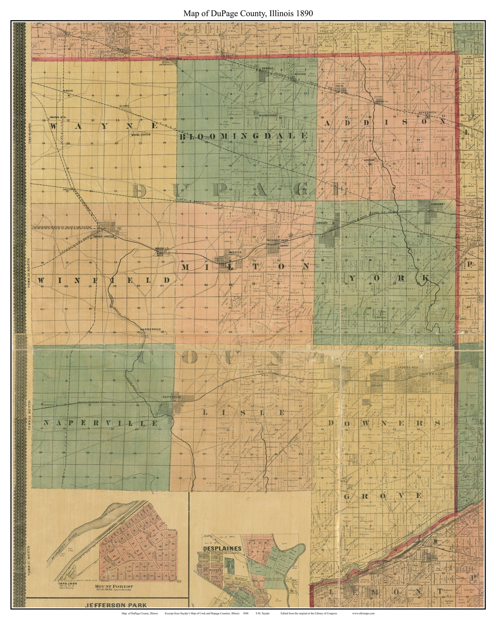 Dupage County Illinois 1890 Old Wall Map Custom Reprint With Etsy Israel